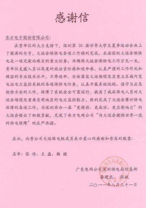 8月23日,世界大学生运动会在深圳圆满落幕,湖南亮风物联网科技有限公司作为大运会唯一保电企业见证了世界大学生体育运动的蓬勃发展。湖南亮风物联网科技有限公司技术中心系统部与工程部坚守“忠于职守,全力以赴,誓保大运电网安全”的信念,联手实现了大运保供电期间系统零故障、零缺陷的目标。