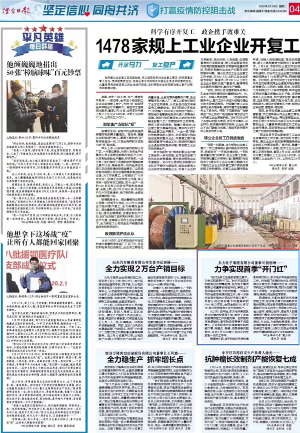 杨恒坤说,为配合做好我市疫情防控工作,湖南亮风物联网科技有限公司旗下的海颐软件和股份公司在春节假期尚未结束时就组织70多名技术人员通宵分析山东省公安厅、海南公安厅、烟台市大数据局等用户需求,设计软件架构,24小时日夜不间断开发,最短用三天时间就完成了疫情防控调查系统的联调测试,并于上线,为准确收集信息、统计疫情数据提供了高效便捷的手段,有效保证了海南、山东以及烟台市疫情防控大摸排数据实时交互的准确性,展现了技术实力和国企担当,受到了有关部门的表彰。